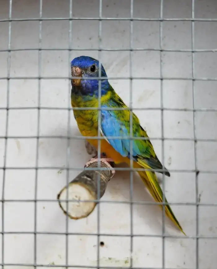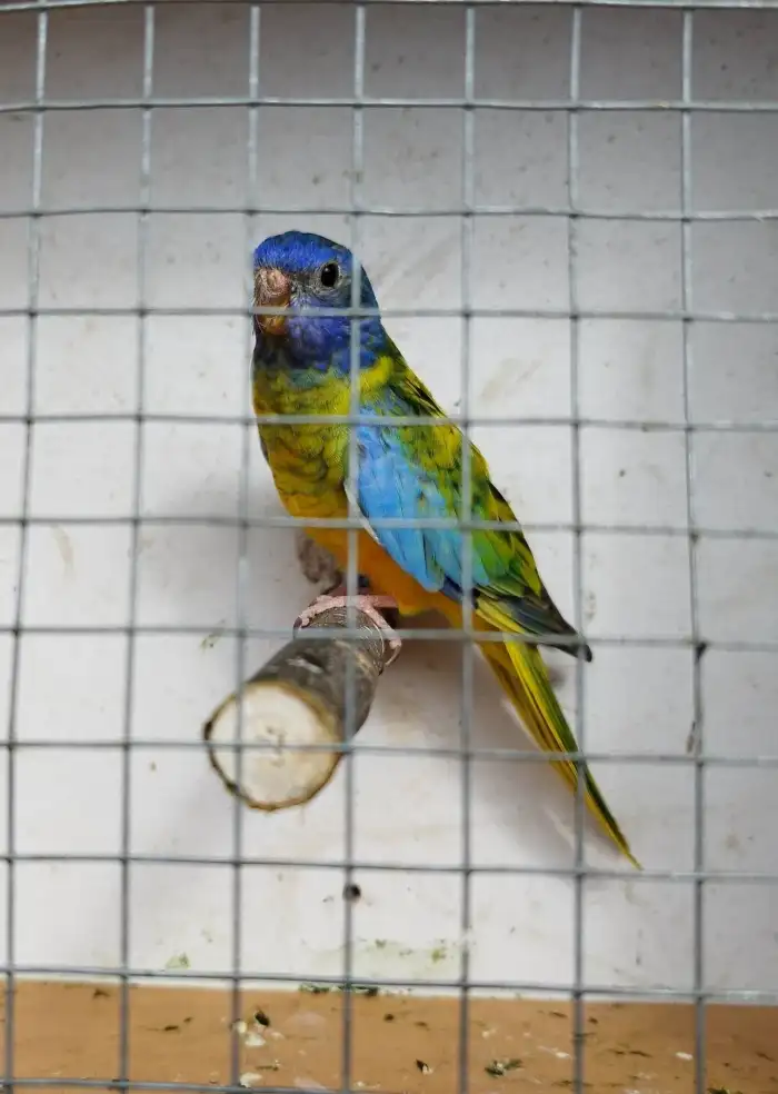Prodám Neofému modrohlavou - Prodám Neofému modrohlavou přírodní. Sameček, kroužek 2025, venkovní chov. Na fotce. 500.-Kč