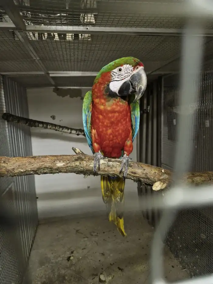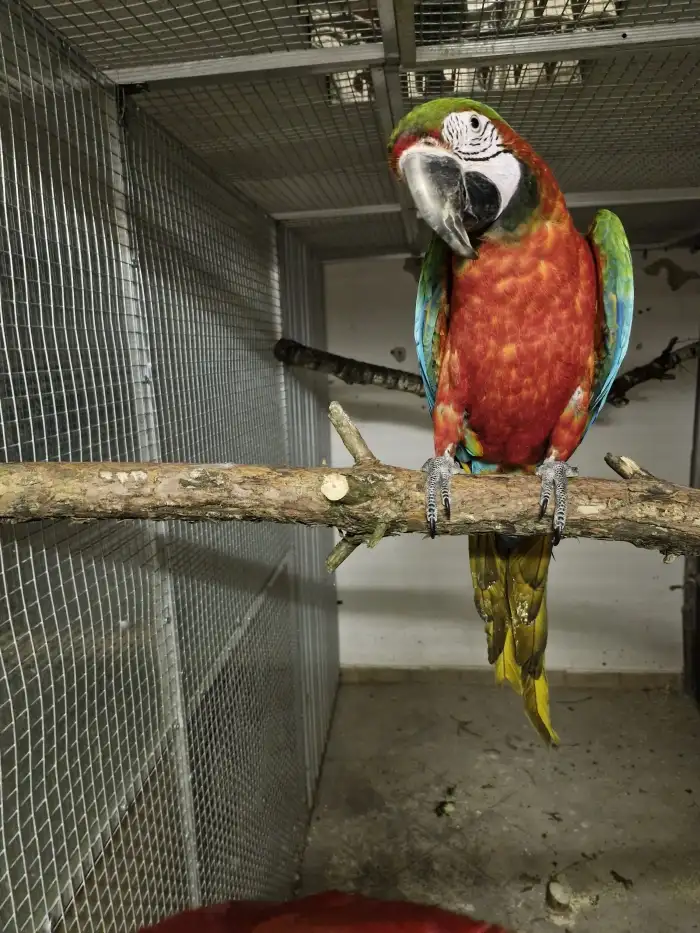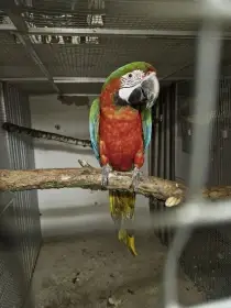 Prodám Aru harlekýna - prodám samičku Ara Catalina 2 letá, nyní se ochočuje. Byla pod rodiči ve volném výletu