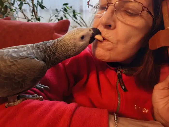 Prodám Žaka velkého - Prodám samičku žaka kongo, z našeho vlastního chovu. Nar 29.12.25. Od 30 dne ručně dokrmená,nemá strach z ruky, je zvyklá na kočku, psa, nebojí se vysavače a jiného hluku v domá...