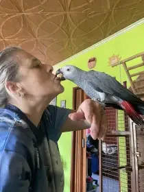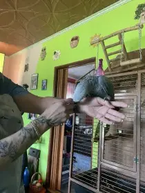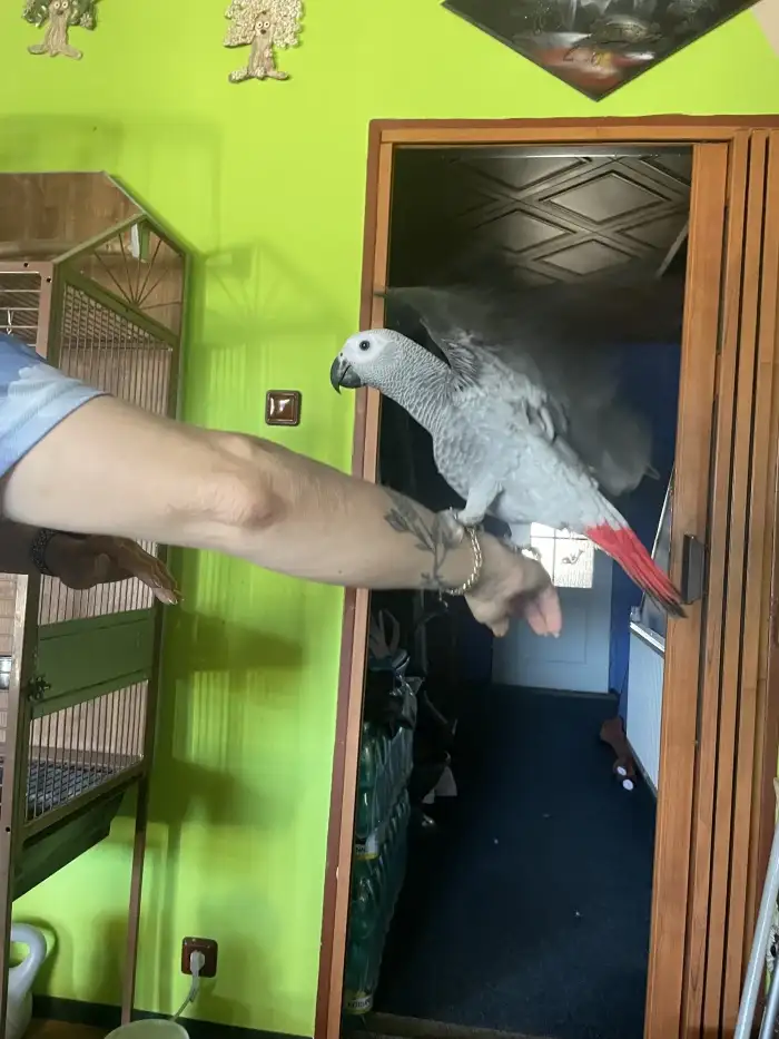 Prodám Žaka velkého - Prodám samičku žaka kongo, z našeho vlastního chovu. Nar 29.12.25. Od 30 dne ručně dokrmená,nemá strach z ruky, je zvyklá na kočku, psa, nebojí se vysavače a jiného hluku v domá...