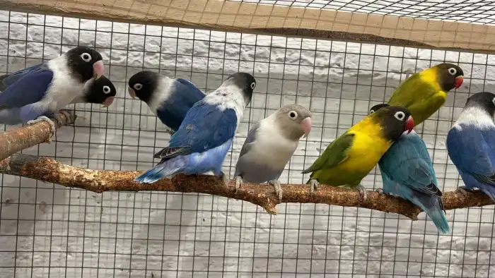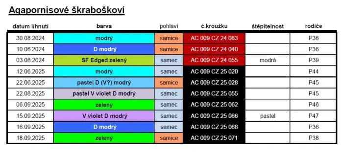 Prodám Agapornise škraboškového - Dobrý den prodám agapornise škraboškového kroužek 25 z venkovní voliéry chybí dva drápky email papousek2020@seznam.cz