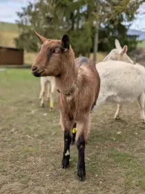 Prodám Česká hnědá krátkosrstá koza - Dobrý den, prodáme 75% hnědou krátkosrstou DOJÍCÍ kozu. Stáří 1 rok a 2 měsíce, bezrohá, po prvních kůzlatech, které jsme právě odstavili a kozičku naučili klidn...
