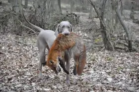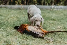 Něco málo o nás. Výmarské ohaře vlastníme 15 let, za tuto dobu jsme získali spoustu zkušeností hlavně s výcvikem a soužitím s tímto plemenem. Aktivnímu chovu se věnujeme 7 let, kdy se nám narodil náš první vrh po naší chovné feně a psovi. U našich psů dbáme hlavně na zdravotní stránku, tudíž všichni mají nadstandardní zdravotní testy. Vzhledem k tomu, že je přítel aktivní myslivec máme se psy lovecké zkoušky nad rámec uchovnění a pravidelně se s našimi psy zúčastňujeme každou sezonu honů na drobnou zvěř. Kromě stránky lovecké se věnujeme i té exteriérové a během roku se zúčastňujeme výstav jak v ČR tak i v zahraničí, kde se naši psi neztratí ani v kvalitní konkurenci.