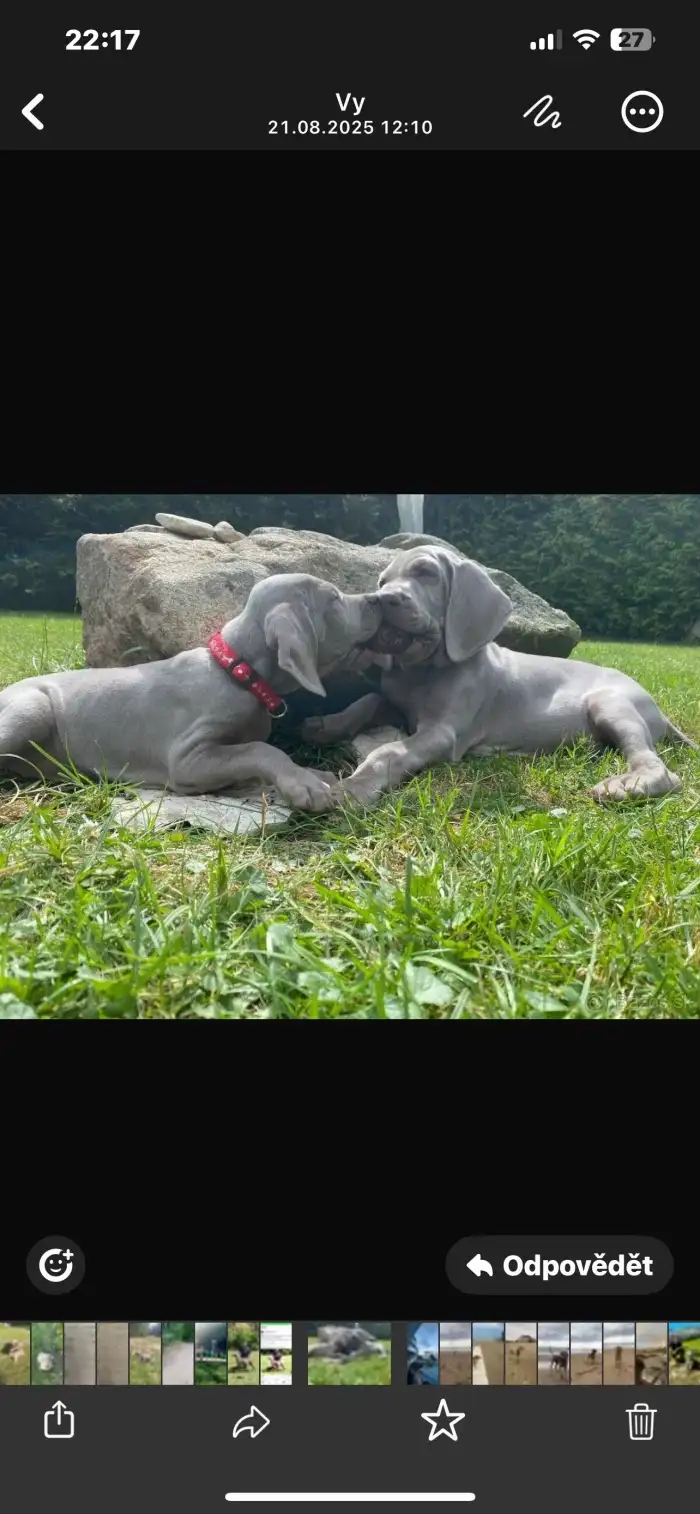 Prodám Výmarského ohaře - 28.9.2025 se nám v CHS Horky-Weim narodilo 10 štěňátek ze zahraničního spojení(austral. -americké krevní linie) 3 fenečky a 7 pejsků. Aktuálně jsou 3💙chlapečci volní a hleda...