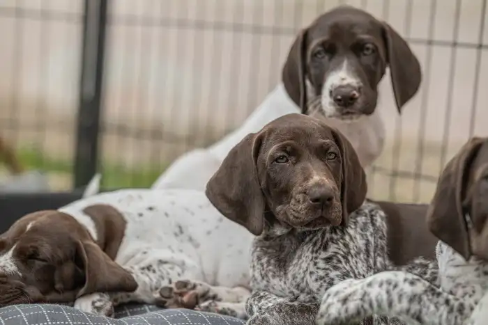 Prodám Německého krátkosrstého ohaře - Hledáme milující nové rodiny pro štenata německého krátkosrstého ohaře po lovecky vedených rodičích, klidné a vyrovnané povahy. Do světa je pošleme socializovaná...
