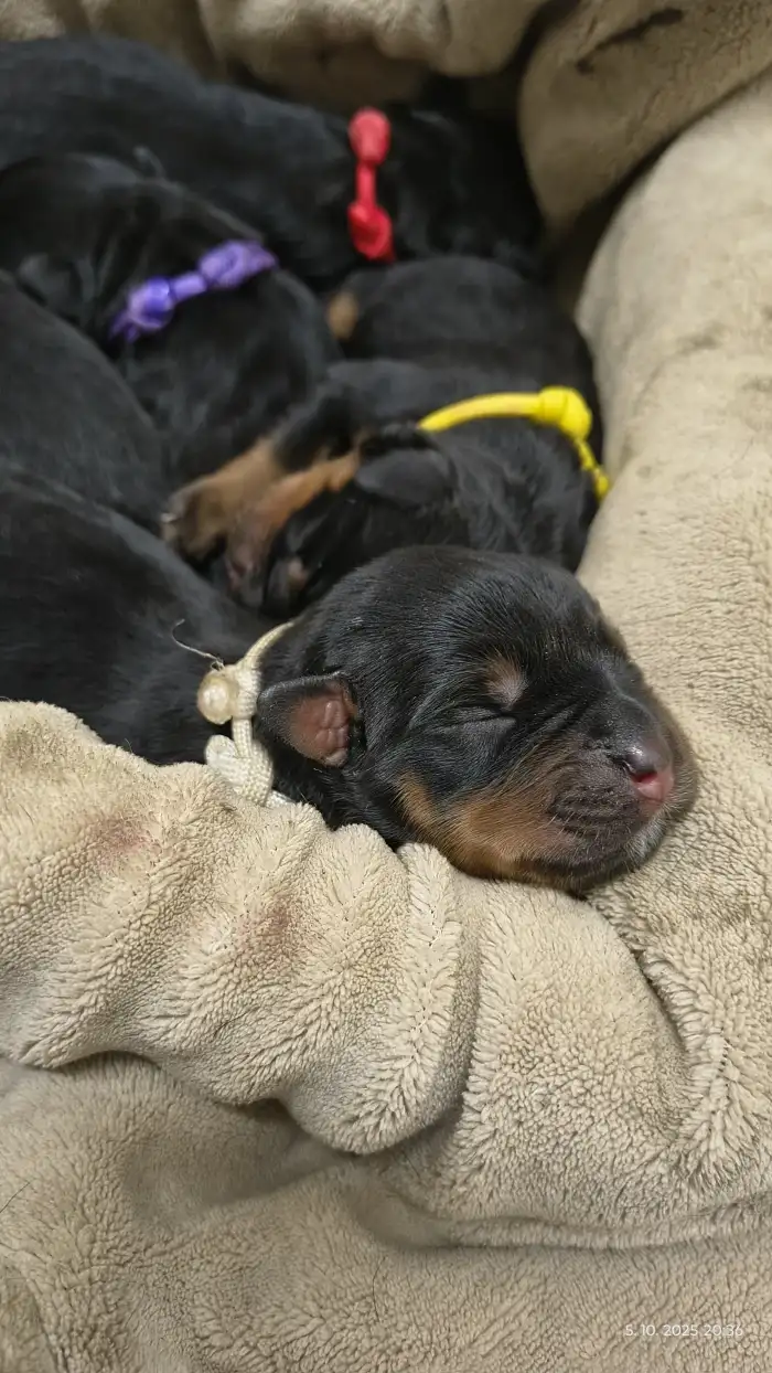 Prodám Rotvajlera - Rotvajler štěňata s PP - nabízím. Volná už pouze jedna fenka k zadání! Externí vrh ChS Rotobox nar.18.9.2025, 4 psi / 6 fen. Oba rodiče jsou skvělí představitelé plemene, vyrovnan...