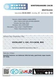 • Matka: Alisa Wallachian Kingdom – Slovenský šampión, 4× CAC, 4× CACIB, 1× BOB, 3× BOS