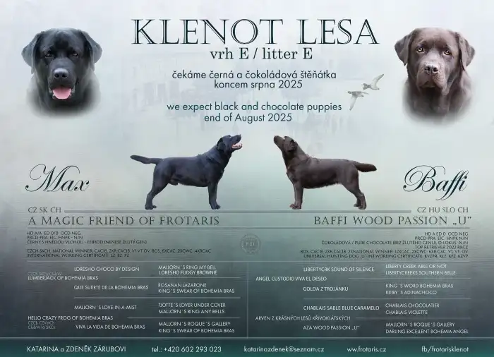 Prodám Labradorského retrívra - CHS z Havlova dvora nabízí černá a čokoládová štěňátka labradora po zdravých a geneticky testovaných rodičích, dysplazie kyčle, lokty, ramena vše čisté. Předpoklad přát...