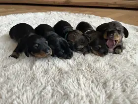 Prodám Jezevčíka drsnosrstého - Prodám štěňata jezevčíka drsnosrstého trpasličího. Volní pouze psy. Vrh 4.11.2025. Možný odběr kolem vánoc. Barva červená. Fena Astrid od Louteckého potoku a pes SIDO v...