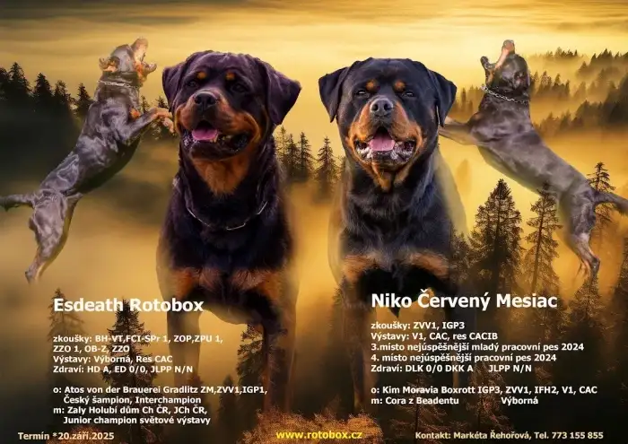 Prodám Rotvajlera - Chovatelská stanice Lord of Castles přijímá rezervace na štěňata rotvajlera s PP z vrhu "A",narozená 5.10.2025 o. ich.cortéz z Beadentu Interchampion c.i.e., ch cz, usa, maked...