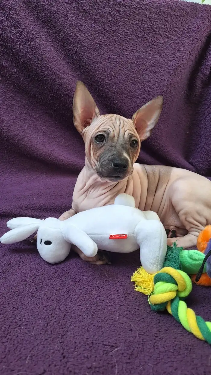 Prodám Amerického bezsrstého teriéra - V naší ChS El Diablo Rose se nám narodili čtyři krásní kluci z nepříbuzného spojení, po výstavně vedených rodičích. Maminkou štěňátek je naše krásná chovná fenk...