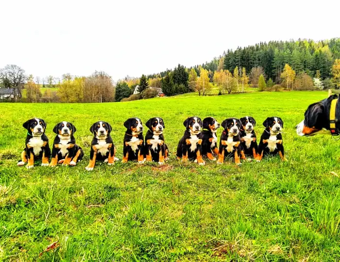 Prodám Velkého švýcarského salašnického psa - Hledáme rodiny pro naše štěňátka Velkého Švýcara. K prodeji jsou 3 holčičky a 3 kluci. K odběru budou po 8.11.2025, štěňátka budou očkovaná, odčervená, so...