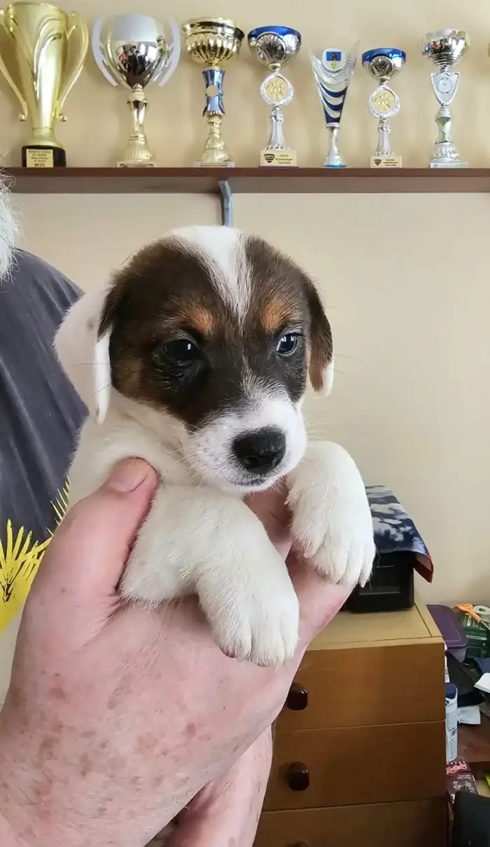 Prodám Jack Russell teriéra - CHS od Vrchu Kamýk nabízí k prodeji tricolorního hrubosrstého pejska Jack Russell teriéra s průkazem původu po zrušené rezervaci. Narození 07. 09. 2025. Otec: Red Roy z A...