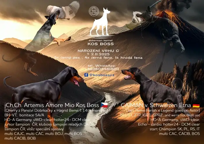 rodiče:JCh, Ch. Artemis Amore Mio Kos Boss 🇨🇿 × CAIMAN v. Schwarzen Etna 🇩🇪