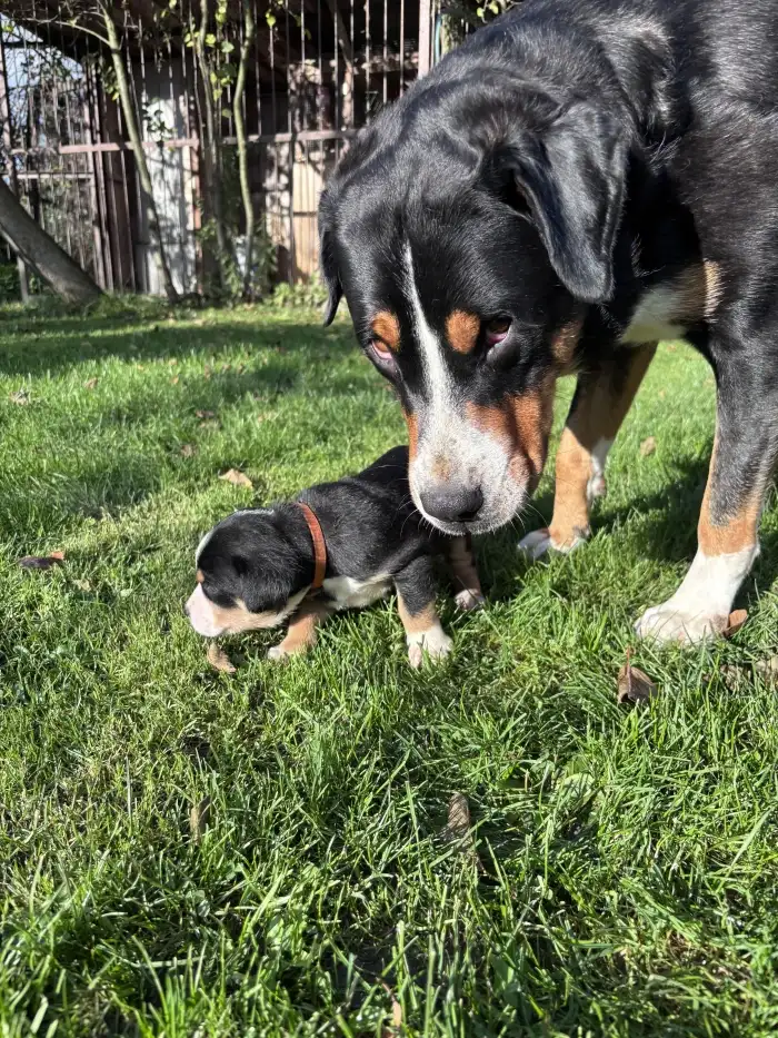 Prodám Velkého švýcarského salašnického psa - Hledáme rodiny pro naše štěňátka Velkého Švýcara. K prodeji jsou 3 holčičky a 3 kluci. K odběru budou po 8.11.2025, štěňátka budou očkovaná, odčervená, so...