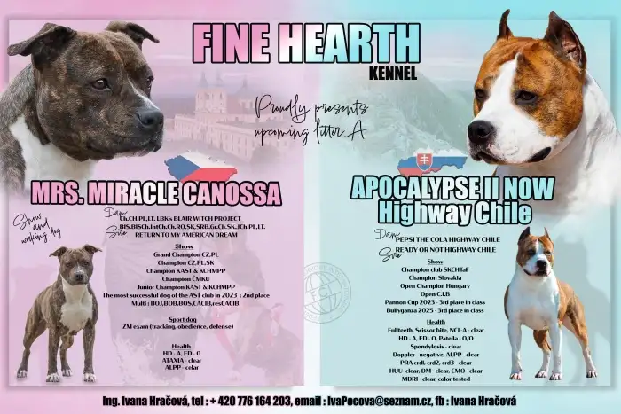 Prodám Amerického stafordšírského teriéra - Přijímám rezervace pracovního spojení Amerických stafordširských teriérů. Předpoklady ke sportovní kynologii, výstavám a jiným sportům.