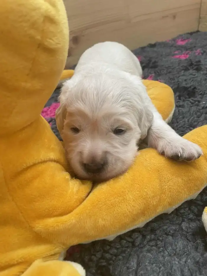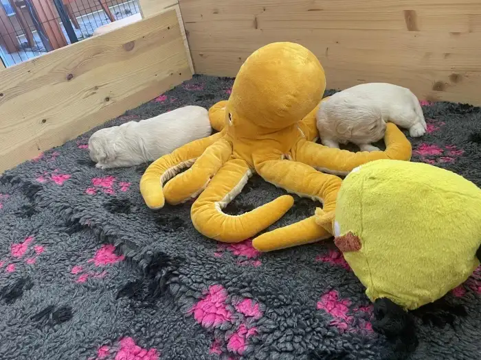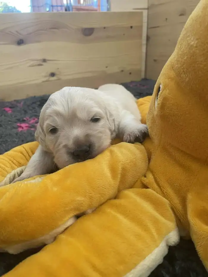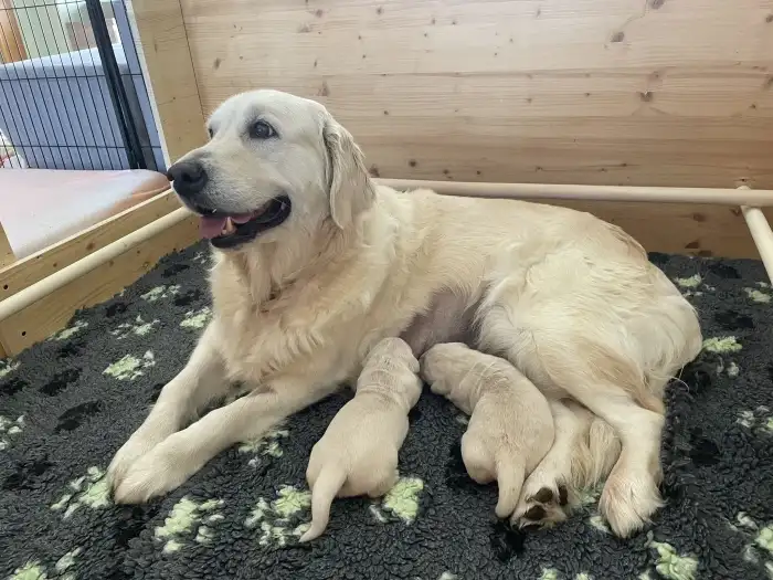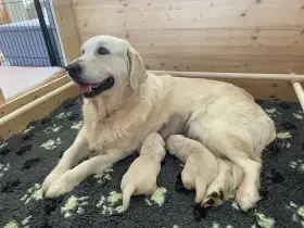 Dvě zlaté retrívří fenečky nar. 18.10.25 s průkazem původu ze zahraničního krytí, které mají skvělé zdravotní, výstavní, pracovní a canisterapeutické předpoklady. Oba rodiče mají genetické testy.