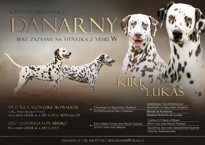 Krásný den všem. Jsme středně velká chovatelská stanice, mazlíčci paničky, která propadla dalmatinům. V naší chst najdete černě i hnědě tečkované puntíky. Máme chovné fenky i krycí psy z několika zemí, chováme pod FCI. V minulosti jsme se aktivně věnovali coursingu, než panička zlenivěla :-D. Zapojili jsme se do projektu LUA - chov dalmatinů bez vlohy pro ledvinové kameny, která je dalmatinům vlastní. Ke konci roku 2025 se v naší chst narodilo zatím 18 jedinců nesoucí LUA gen. od roku 2026 budou první z nich působit v chovu v ČR. Na výstavách nás moc nepotkáte, puntíci raději lítají u Jizery :-)