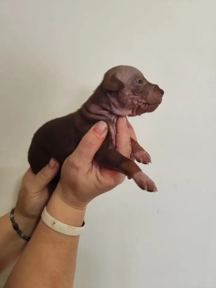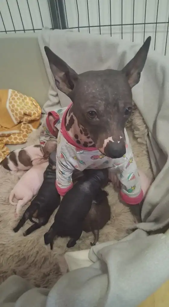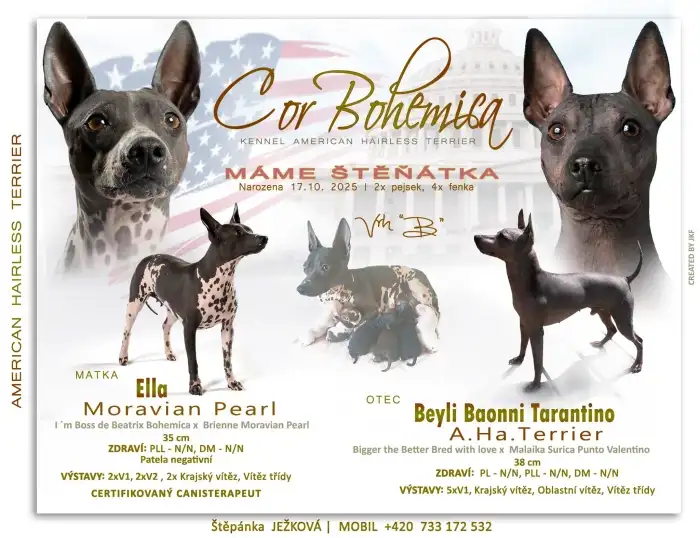 Prodám Amerického bezsrstého teriéra - V naší ChS El Diablo Rose se nám narodili čtyři krásní kluci z nepříbuzného spojení, po výstavně vedených rodičích. Maminkou štěňátek je naše krásná chovná fenk...