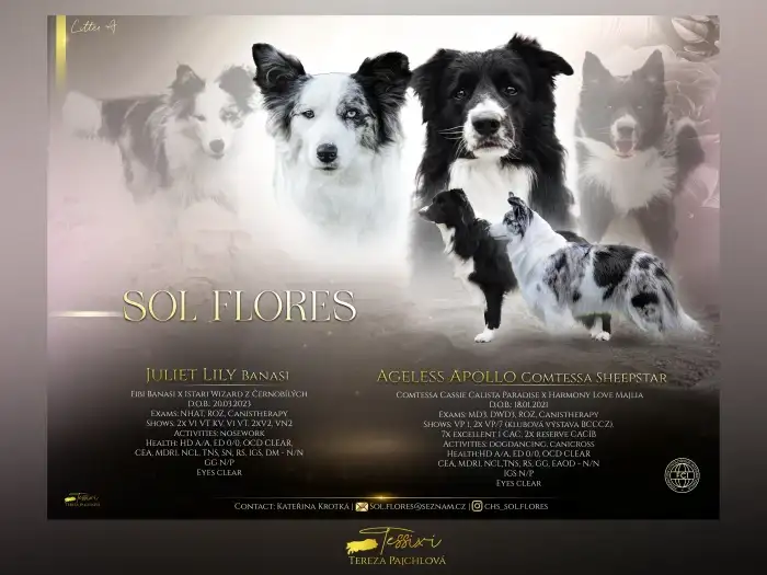 Prodám Border kolii - Na prodej jsou 4 štěňata Border Collie ze dvou různých vrhů. Jeden vrh je starý 6 týdnů a druhý vrh 8 týdnů. Štěňata jsou třikrát očkovaná, čipovaná a pravidelně odčervovaná....