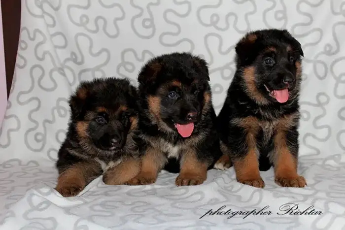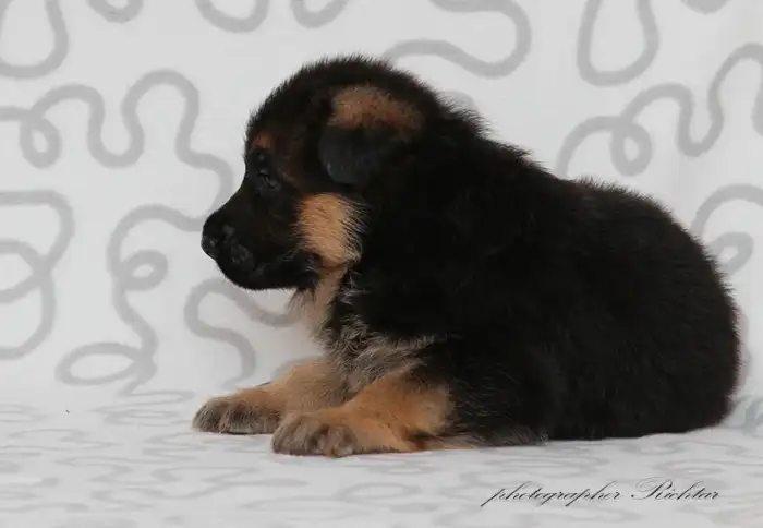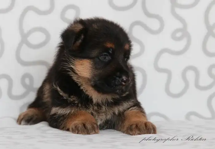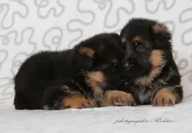Prodám Německého ovčáka - Chovatelská stanice NO přijímá rezervace na vlkošedá a celočerná štěňátka. Otcem je Romeo z Jukasu (Henrik v. Wolfsheim x Gucci z Jukasu), DKK A, DLK 0/0, SA 0(CZ), LÜW 0(DE)...