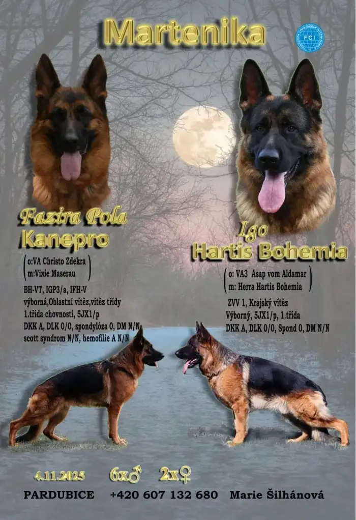 Prodám Německého ovčáka - CHS Dopey Bohemia nabízí štěňata s PP německého ovčáka z pracovniho spojení Ayris Dopey Bohemia x Quin z údolí Úpy oba rodiče absolutně vyrovnané povahy s velmi silnou vazbou...