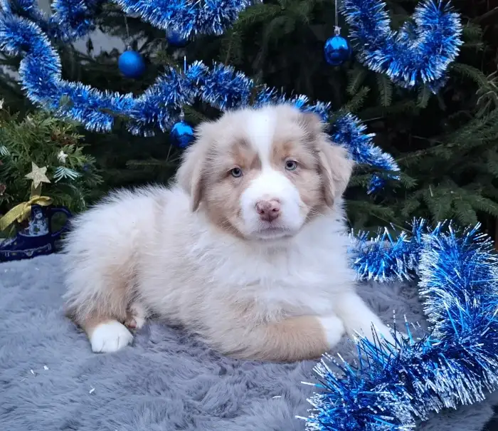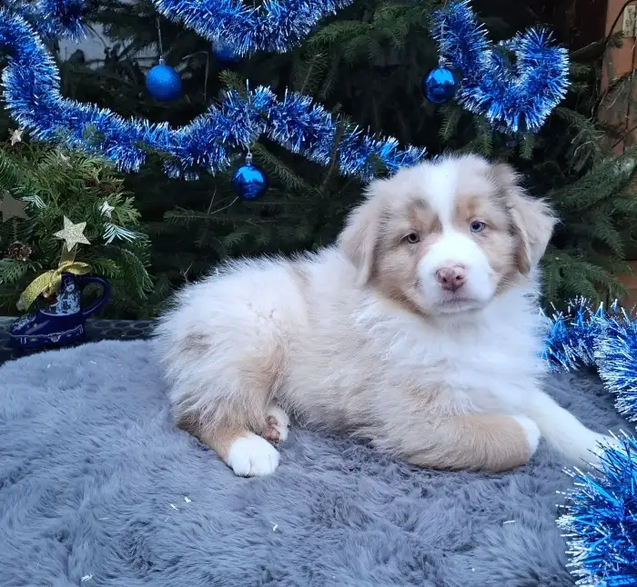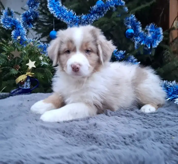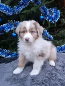 Prodám Australského ovčáka - Zadáme poslední volné štěňátko z výstavně - pracovního spojení,ze zahraničního krytí. Pejsek Háu Mystic Arapaho je zbarvení red merle, má dlouhý ocásek a narodil se spo...