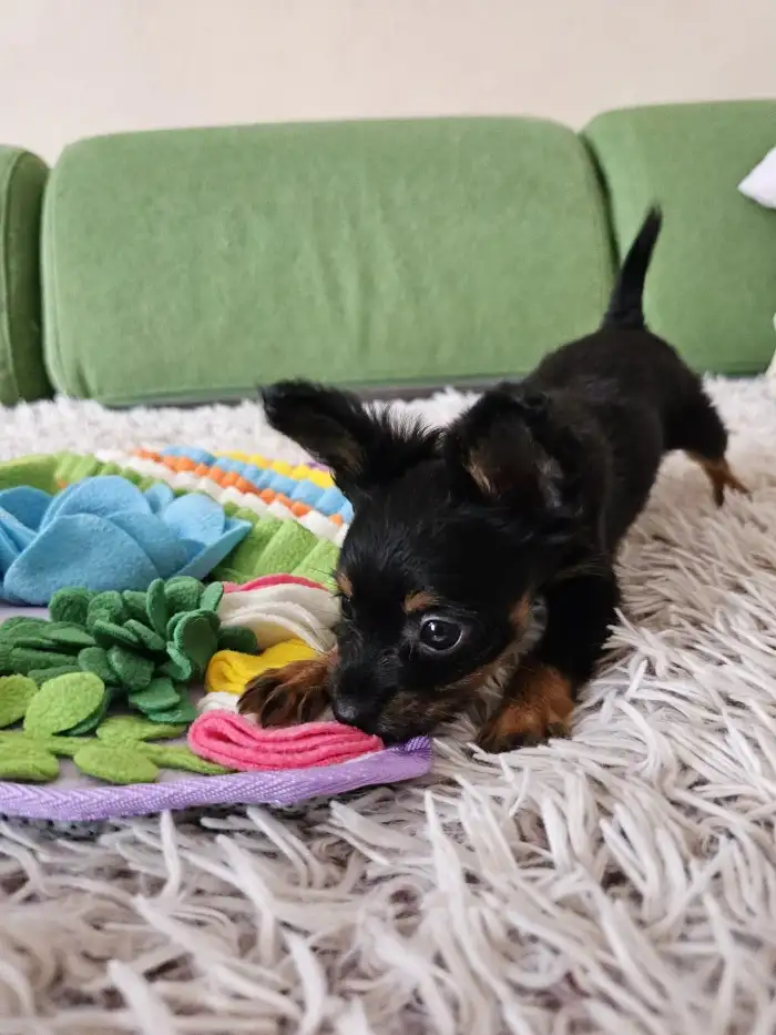 Prodám Ruského toy - Nabízím krásná vymazlená štěňátka plemene Ruský toy hladkosrstý a dlouhosrstý s průkazem původu(PP FCI). Štěňátka jsou vymazlená, socializovaná. Fenka (žlutá) a pejsek( zelený) hl...