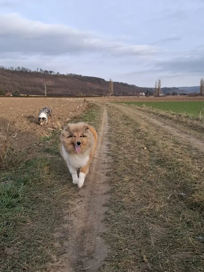 Prodám Kolii dlouhosrstou - Po zrušené rezervaci opět nabízíme fenku dlouhosrsté kolie s PP Aimy Sluneční Démon. Jsou jí 4 měsíce je zlaté barvy. Hodná velice hravá. Má veškeré očkování, je odčerve...