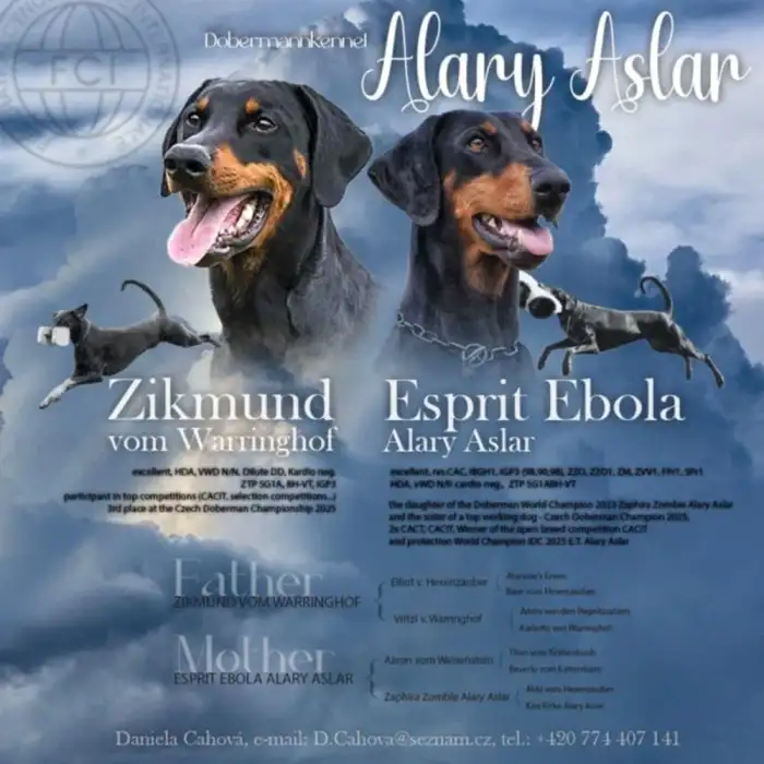 Prodám Dobrmana - Chovatelská stanice ALARY ASLAR prodá štěňata s PP z vynikající pracovní linie a s nepříbuzným rodokmenem. černá a hnědá štěňata, u kterých se předpokládá velmi vyrovnaná povaha, vy...