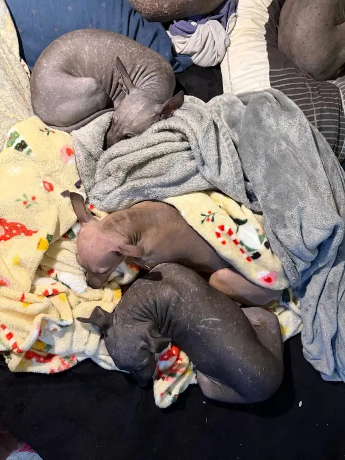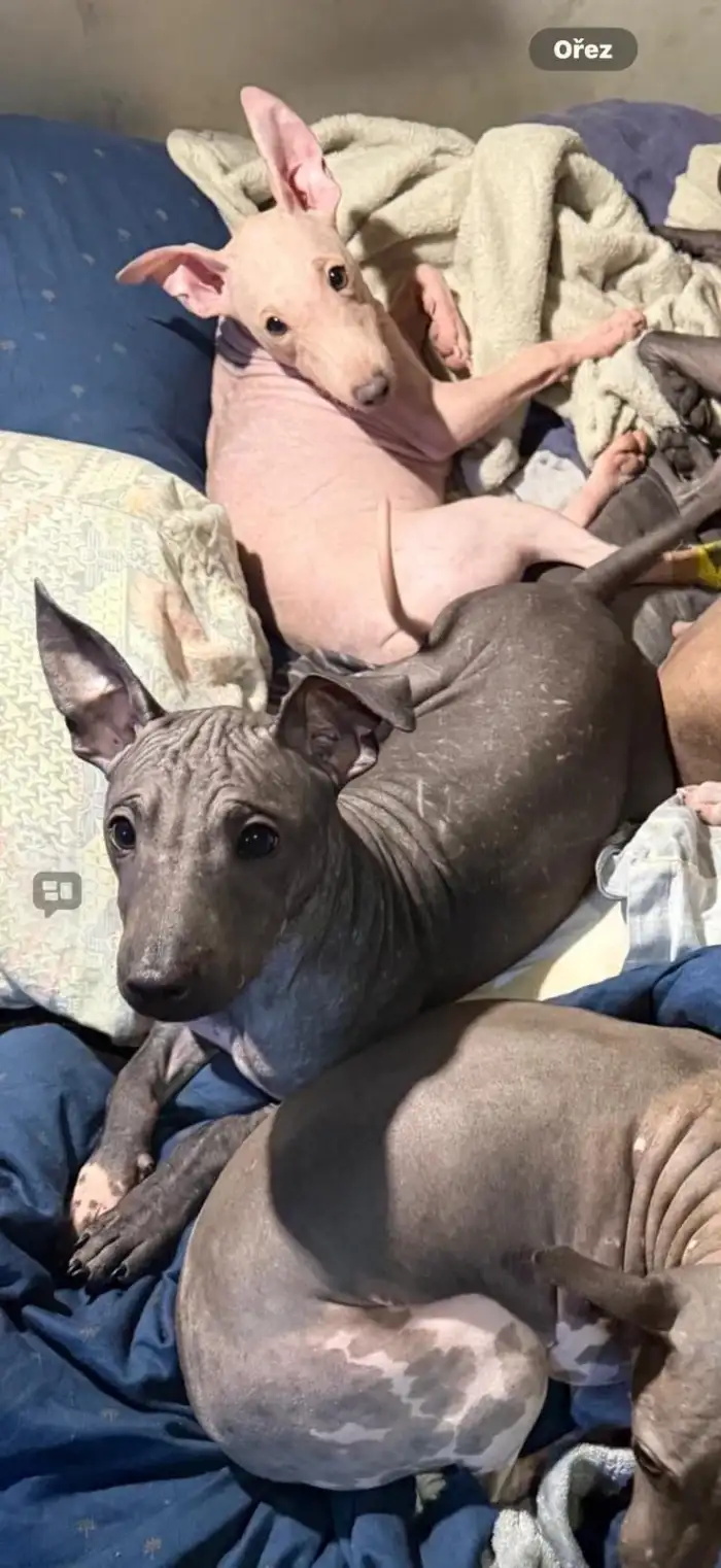 Do milé rodiny za rozumnou cenu 3,5 měsíční štěňata (pejsci) - americký bezsrstý teriér s PP, čipem, pasem, očkováním. Vychováváni v domácím prostředí. Tři pejsci: Bílý, černý a modrý.