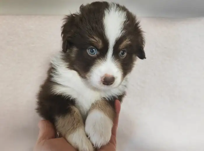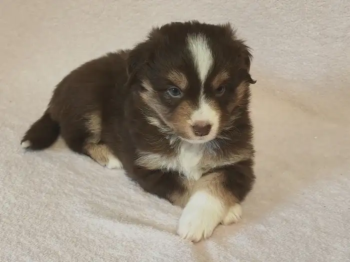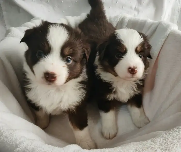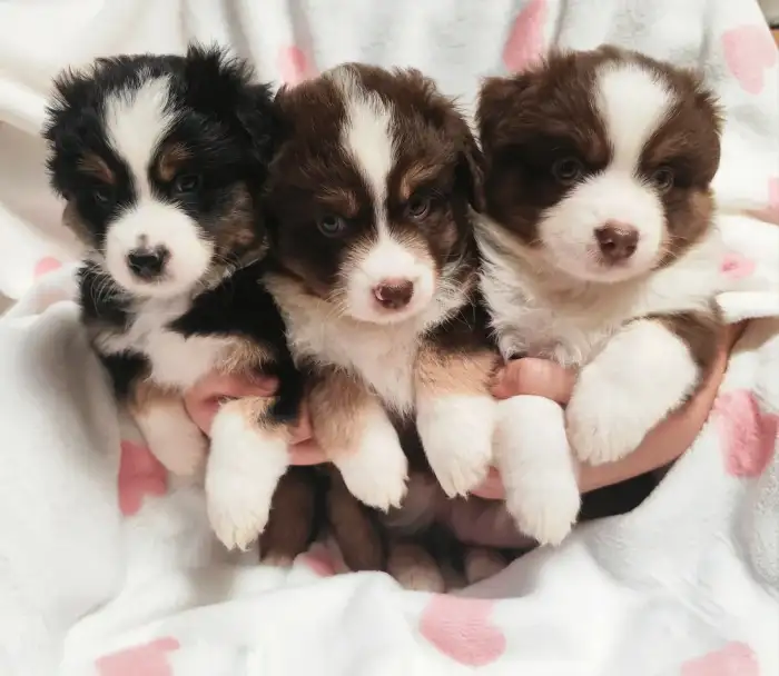 Prodám Australského ovčáka - Chovatelská stanice nabízí štěňátka australských ovčáků s PP, nar.: 12. 11. 2025. Hledáme správné majitele pro čtyři krásné štěňátka, 3 psí kluky bez ocásků (bluemerle, r...