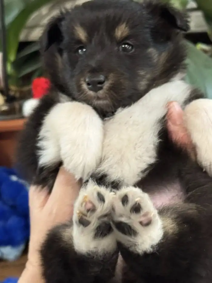 Hledáme domov pro tricolorního pejska šeltie. má krásný datum narození 1.1. 2026