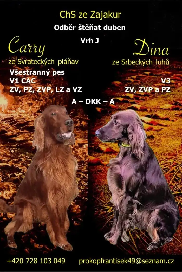Prodám Irského setra - Chovatelská stanice ze Zajakur nabízí z opakovaného spojení k prodeji štěňata Irského setra pejsky. Odběr kolem 20 dubna oba rodiče jsou lovecky i výstavně vedeny oblast Jičín.Š...