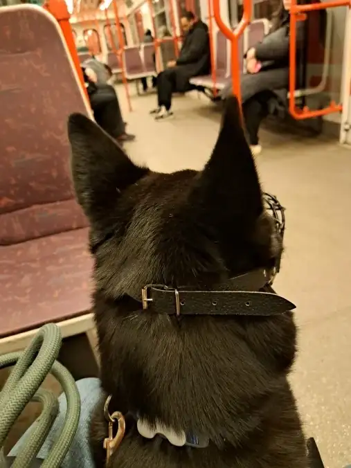 • Bez problému zvládá cestování autem (neslintá, nezvrací, je klidný), vyzkoušel si i metro