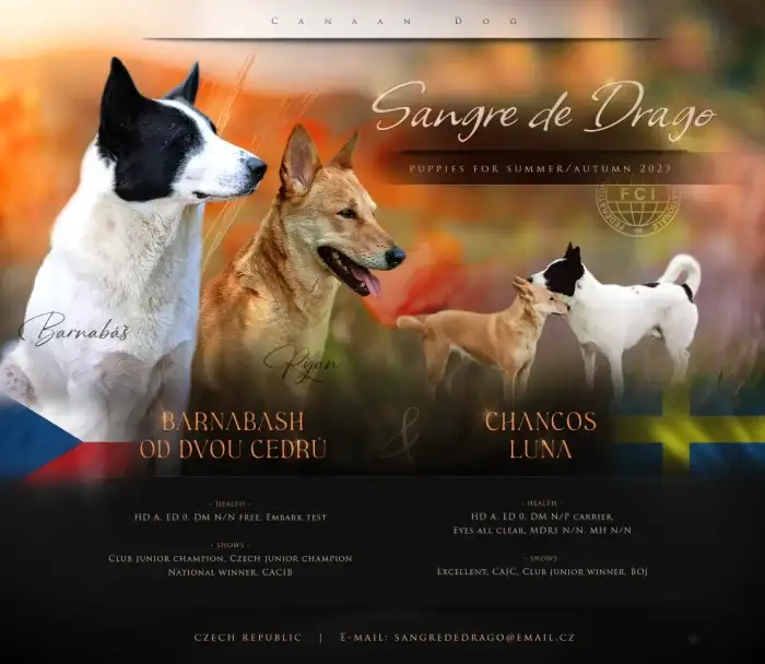 🌳 Kanaánský pes je zdravé přírodní plemeno, u nás zatím velmi málo známé. Jsou to výborní hlídači oddaní své rodině, mají střední velikost (50 - 60 cm). Hodí se do města i na venkov, na pachové práce i pro rekreační sport. Jsou přizpůsobiví, venku jsou rádi aktivní a doma se přitulí na gauči. Skvělí parťáci na výlety, rádi se podívají k moři i do hor, vyspí se pod širákem nebo s vámi zajdou na něco dobrého do dog-friendly kavárny.