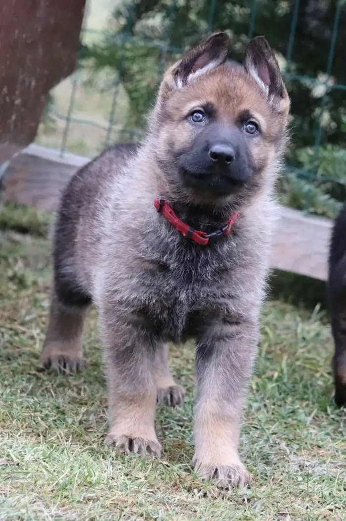 Prodám Německého ovčáka - 🐾 Chovatelská stanice THRUDHEIMTHOR 🐾 Poslední tři volní 🙂 fenky Chione:červený. Cherma:ružový a a pejsek Chodr:modrý vrh CH z pracovního spojení, vhodná k vý...