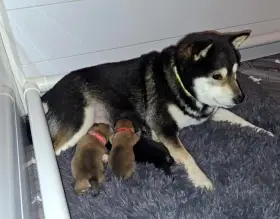 Prodám Shiba inu - Chovatelská stanice Panství Yellow House nabízí štěňata Shiba Inu s PP ČMKU/FCI- dva pejsci a jedna fenka. Datum narození vrhu - 10.01.2026. Barva: černá se žlutými znaky (black...