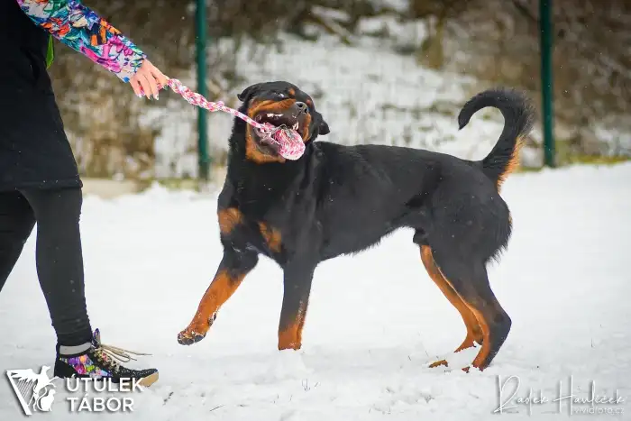 Tak se jukneme ještě na závěr na ty bonusy – hygiena super, snaží se, nebude to doma žádné čuně. Nemá destrukční tendence, vůbec žádné. Hračky má rád, vydrží mu, spíše si hraje spolu s člověkem. Trochu tuší, jak funguje aport, ale zatím je spíše fanda přetahování. Je šikovný na nos, baví ho hledat dobroty, což je super způsob, jak mu zaměstnat hlavu. Nevyžaduje dlouhé procházky, téměř netahá, ale trvá, než se naváže na psovoda, aby na něj venku reagoval. Procházky s ním jsou však téměř za odměnu. Jeho procházkové tempo je dané tím, že k nám do útulku přišel podvyživený a bez svalů. Uvidíme časem, jak nabere a zesílí. Určitě však bude super kandidátem na cvičení, balanční podložky a celkově dog fitness. Což jsou aktivity, při kterých bude zapojovat hlavu i hluboké stabilizační svaly.