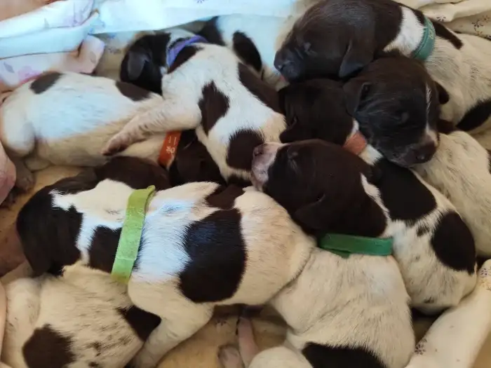 Prodám Německého krátkosrstého ohaře - Štěňata NKO. CHS z Doubravanských polí. Chovatelská stanice s dlouholetou tradicí přivítala na svět vrh U ze spojení Bessy z Bílovské hůrky X Elyas Keiviento. O...