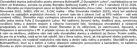 Sulliho inzerce je jednou z nejtěžších, vždycky se při představování pejska snažíme zvýraznit jeho přednosti, potenciál, klady a věci k zamilování se. Píšeme samozřejmě i o limitech, potřebách a o nut...