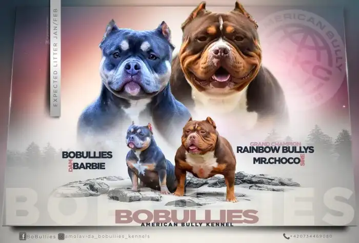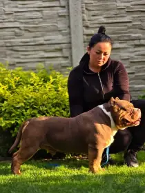 Prodám American Bully - Prodám velmi krásný a mimořádně vydařený vrh štěňat American Bully Micro/exotik s PP 3 X pejsek 4 X fenka Volné už je dvě fenky trichoco a champan a pejsek trichoco Rodiče s...