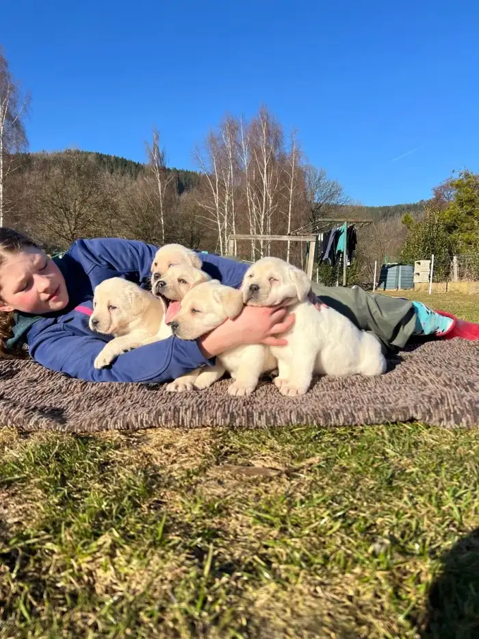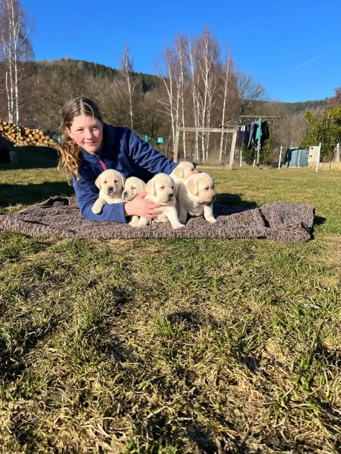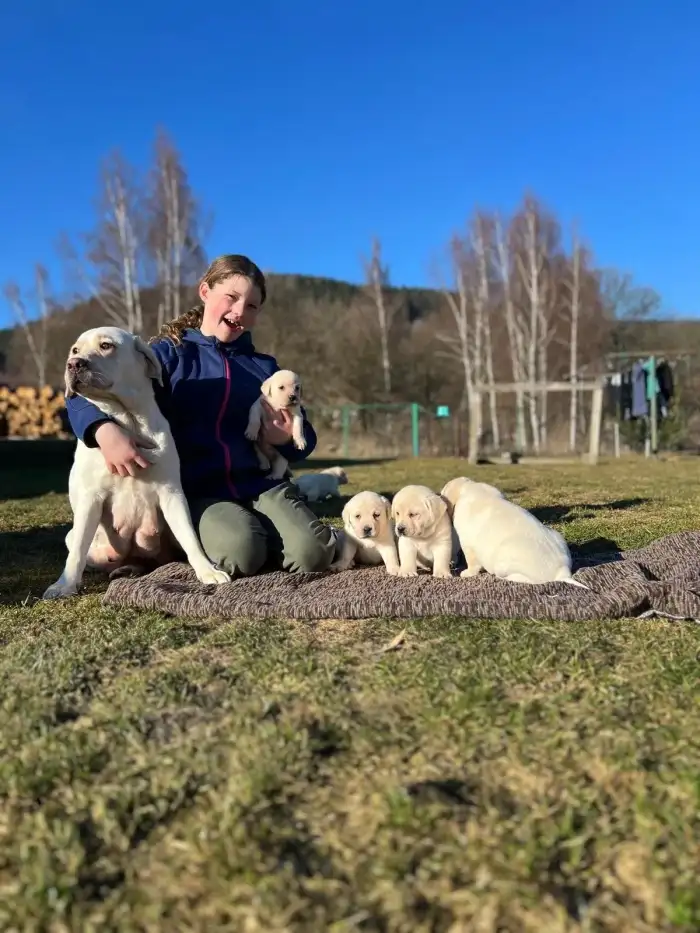 Prodám Labradorského retrívra - Rodinná CHS Jarmich-Chalupy nabízí k rezervaci chlapečky labradorského retrievera s PP roz.18.4.26. Rodiče štěňátek DKK a DLK 0/0 mají velmi přátelskou povahu, výborné...