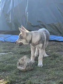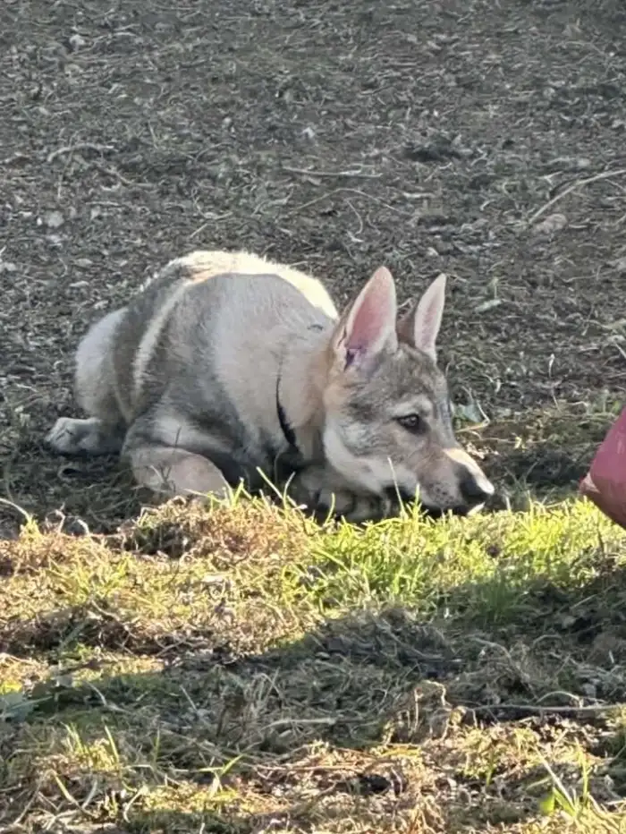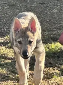 Ahoj Všem představujeme pejska s rodokmen z vrhu ,,CH,, Serigala odchovaný v domácím i venkovním prostředí socializovaný na děti, psi a kočky .Učený na krmení z ruky a k minimalizaci okusování a chňapání přesměrováním této činnosti na hračku.Naučený na venčení na vodítku hned po probuzení. Umí chodit po schodech oběma směry . Spát chodí doma do převozní klece.Přes den si zvyká v teplém počasí na venkovní kotec.
