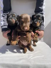Prodám Dobrmana - Rezervace probíhá. Top štěňata! Výborná kombinace rodičů. Narozeni 7. února, k odběru koncem dubna. 6 černých psů, 3 černé feny a 1 hnědá fena. Otec: Kostarika Angel of Shay...