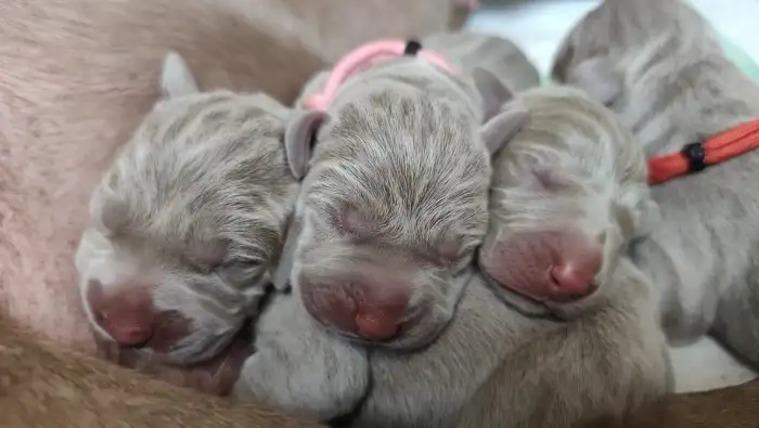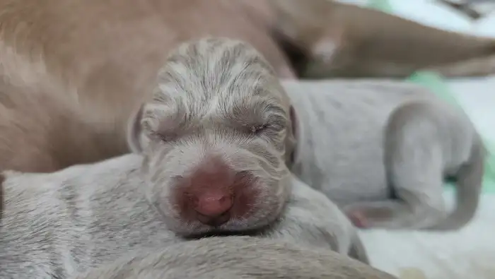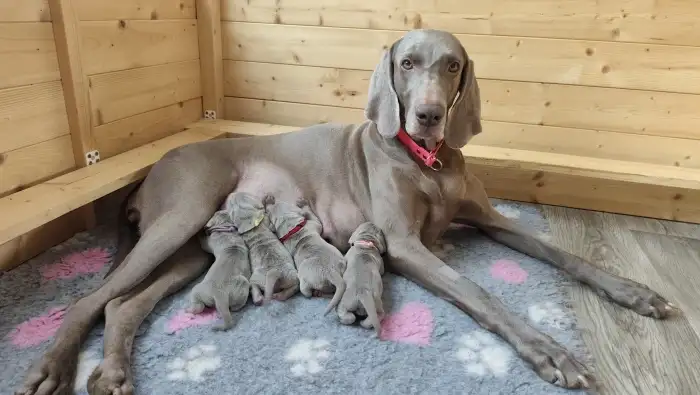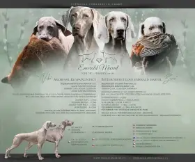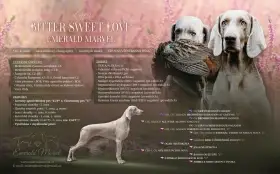 Matka štěňat je odchovaná v naší CHS – Bitter Sweet Love Emerald Marvel (ZARA) – mezinárodní šampionka a šampionka krásy několika zemí, vítězka plemene, vítězka třídy šampionů na klubové výstavě, aktivně využívaná v myslivecké praxi. Má složeny všechny typy loveckých zkoušek – podzimní, zkoušky vodní práce, lesní zkoušky, barvářské zkoušky a všestranné zkoušky – vše v I. ceně. Na BZ se umístila na 2. místě z 24 psů. Na VZ získala titul res. CACT. Má nadstandardní zdravotní vyšetření – vyšetření kyčlí a loktů, vyšetření srdce - vše s negativním výsledkem. Po rodičích je negativní na choroby postihující výmarské ohaře – DM, MH, HUU, HYM, SD, DAS.