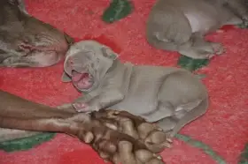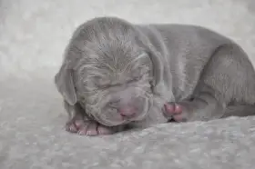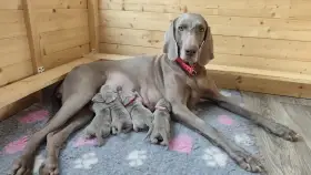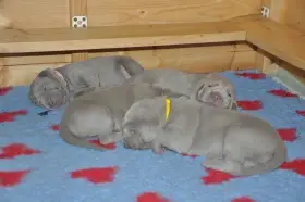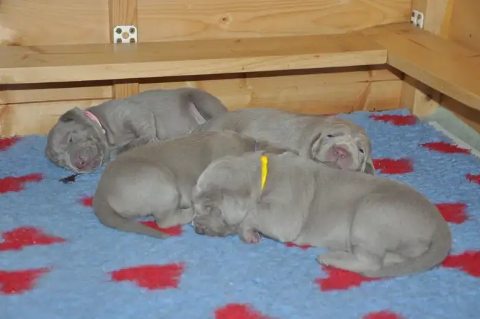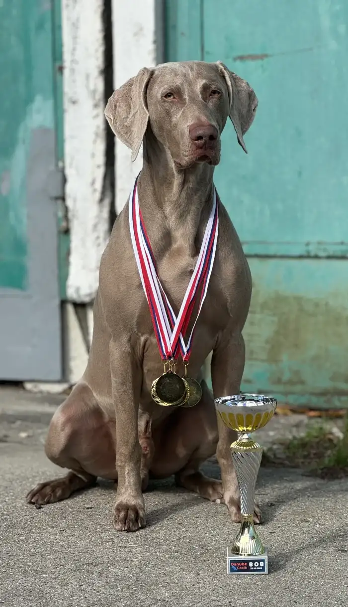 Něco málo o nás. Výmarské ohaře vlastníme 16 let, za tuto dobu jsme získali spoustu zkušeností hlavně s výcvikem a soužitím s tímto plemenem. Aktivnímu chovu se věnujeme 8 let, kdy se nám narodil náš první vrh po naší chovné feně a psovi. U našich psů dbáme hlavně na zdravotní stránku, tudíž všichni mají nadstandardní zdravotní testy. Vzhledem k tomu, že je přítel aktivní myslivec máme se psy lovecké zkoušky nad rámec uchovnění a pravidelně se s našimi psy zúčastňujeme každou sezonu honů na drobnou zvěř. Kromě stránky lovecké se věnujeme i té exteriérové a během roku se zúčastňujeme výstav jak v ČR tak i v zahraničí, kde se naši psi neztratí ani v kvalitní konkurenci.