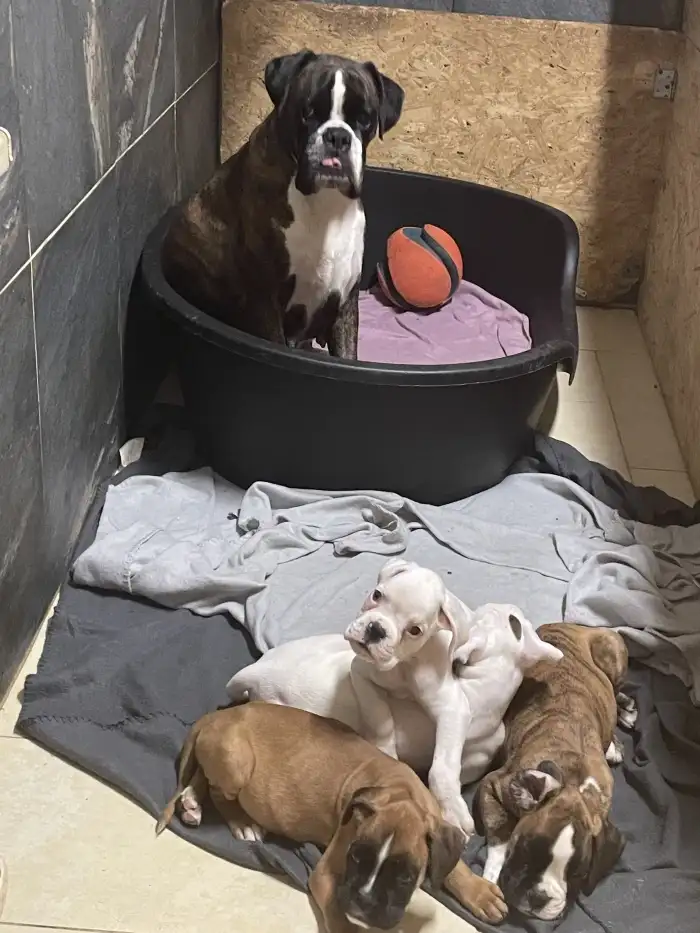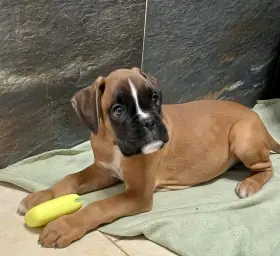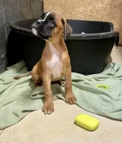 Prodám Německého boxera - Chovatelská stanice nabízí již k odběru boxeřího kluka s PP, rodokmen FCI, čipován, vakcinace, řádná smlouva, rozumná cena, obě kuličky sestouplé, pejsek zdravý bez vad po ko...