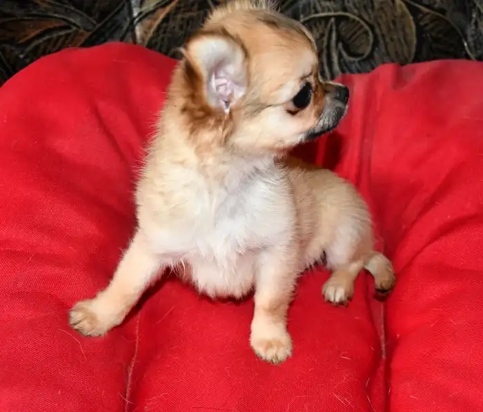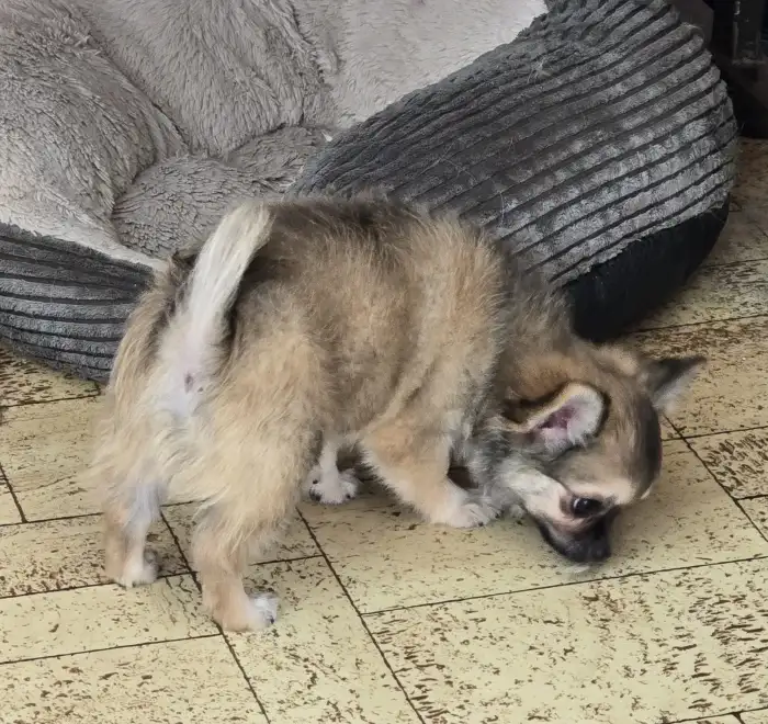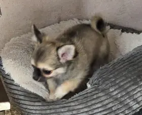 Prodám Čivavu - Chovatelská stanice nabízí krásné štěňátko dlouhosrsté čivavy s průkazem původu – hnědé barvy. Štěňátko je zdravé, očkované, odčervené, čipované a zvyklé na běžný chod domácnosti. Má v...