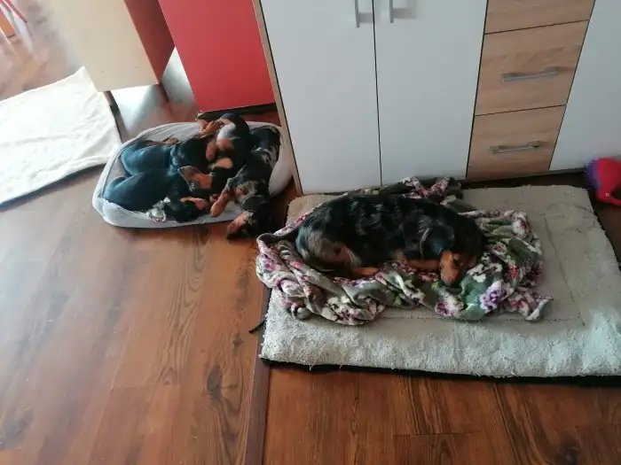 Nabízím štěňátka jezevčíka dlouhosrstého trpasličího (pejsci-bez PP) Pejsci jsou řádně odčerveni,naočkováni, očipováni,s pet pasem. Narozeni jsou 7.2.2026 k odběru v období velikonoc. Oba rodiče s P...